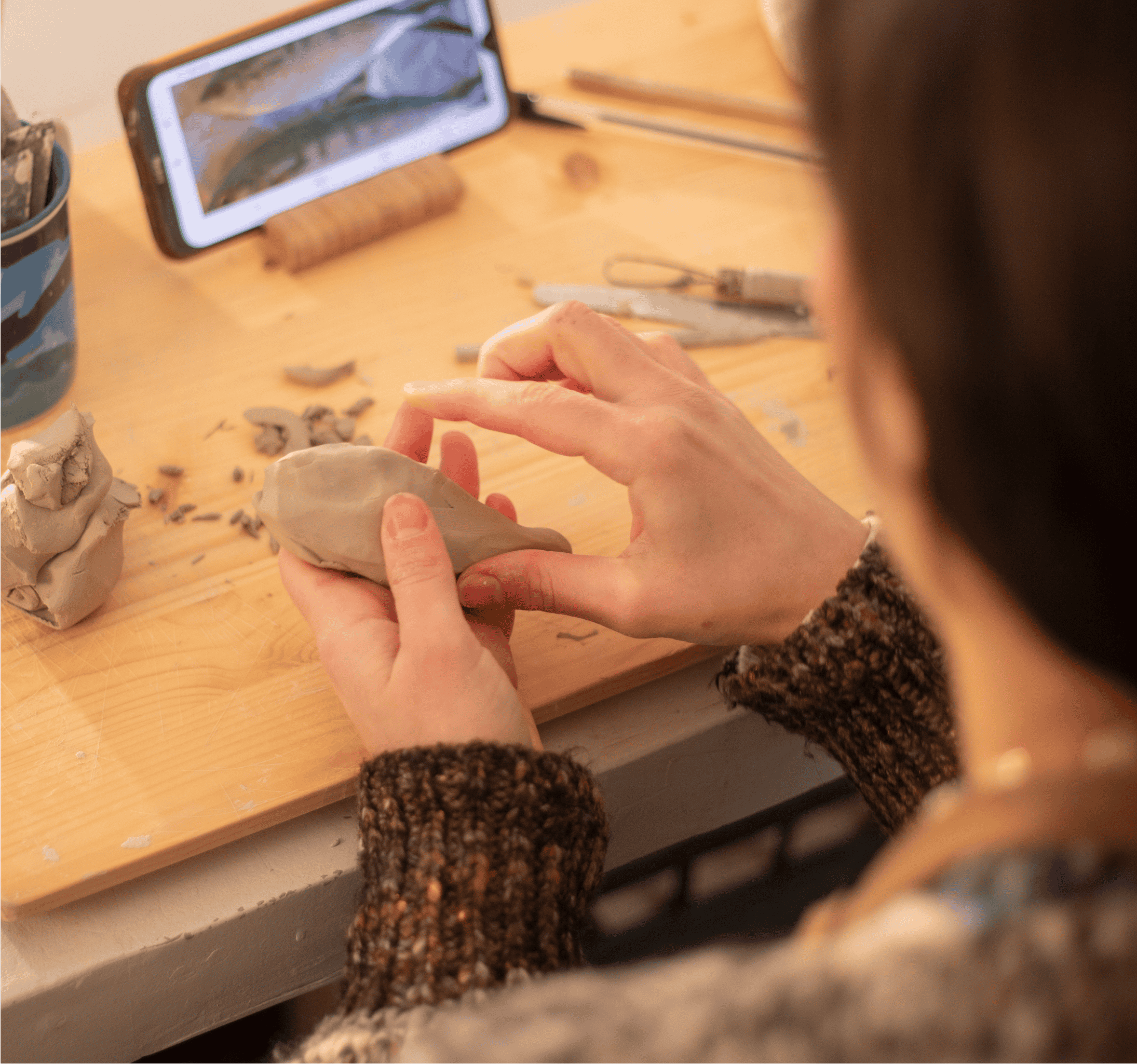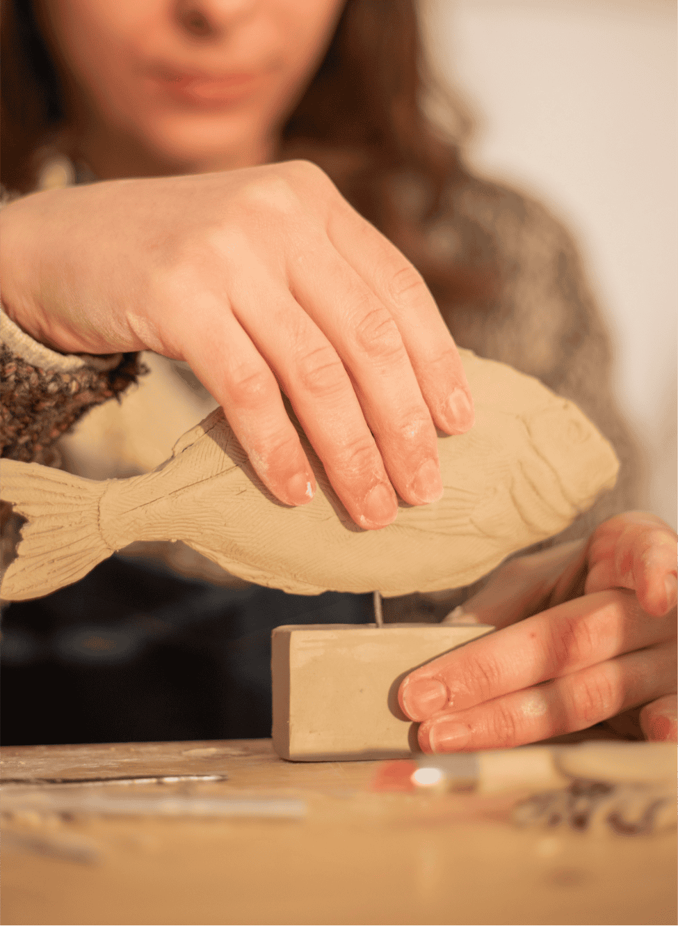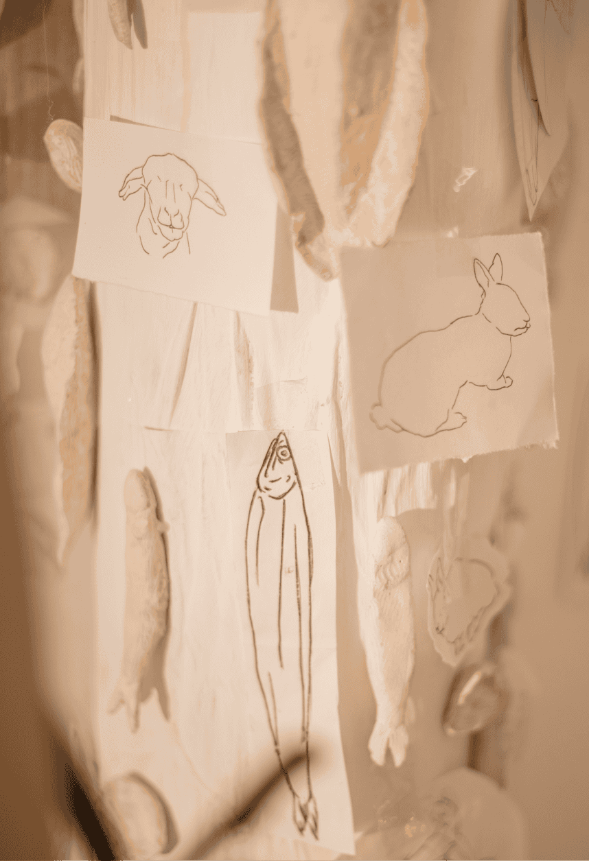 Ricreare il ricordo dell’acqua, della terra, dello spazio attraverso la carta, il legno, l’argilla, la pittura