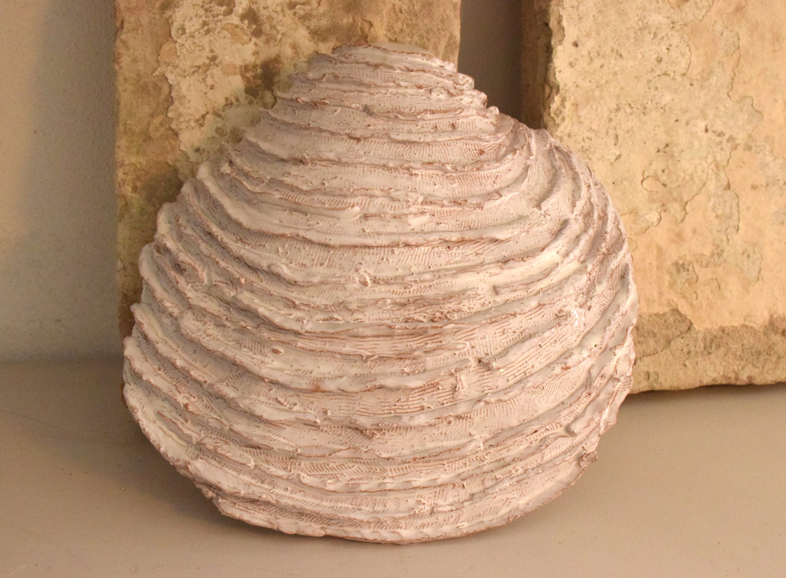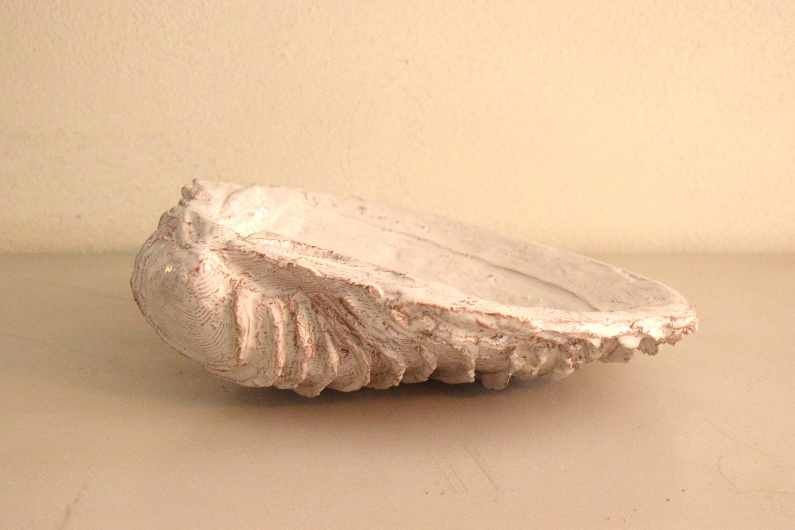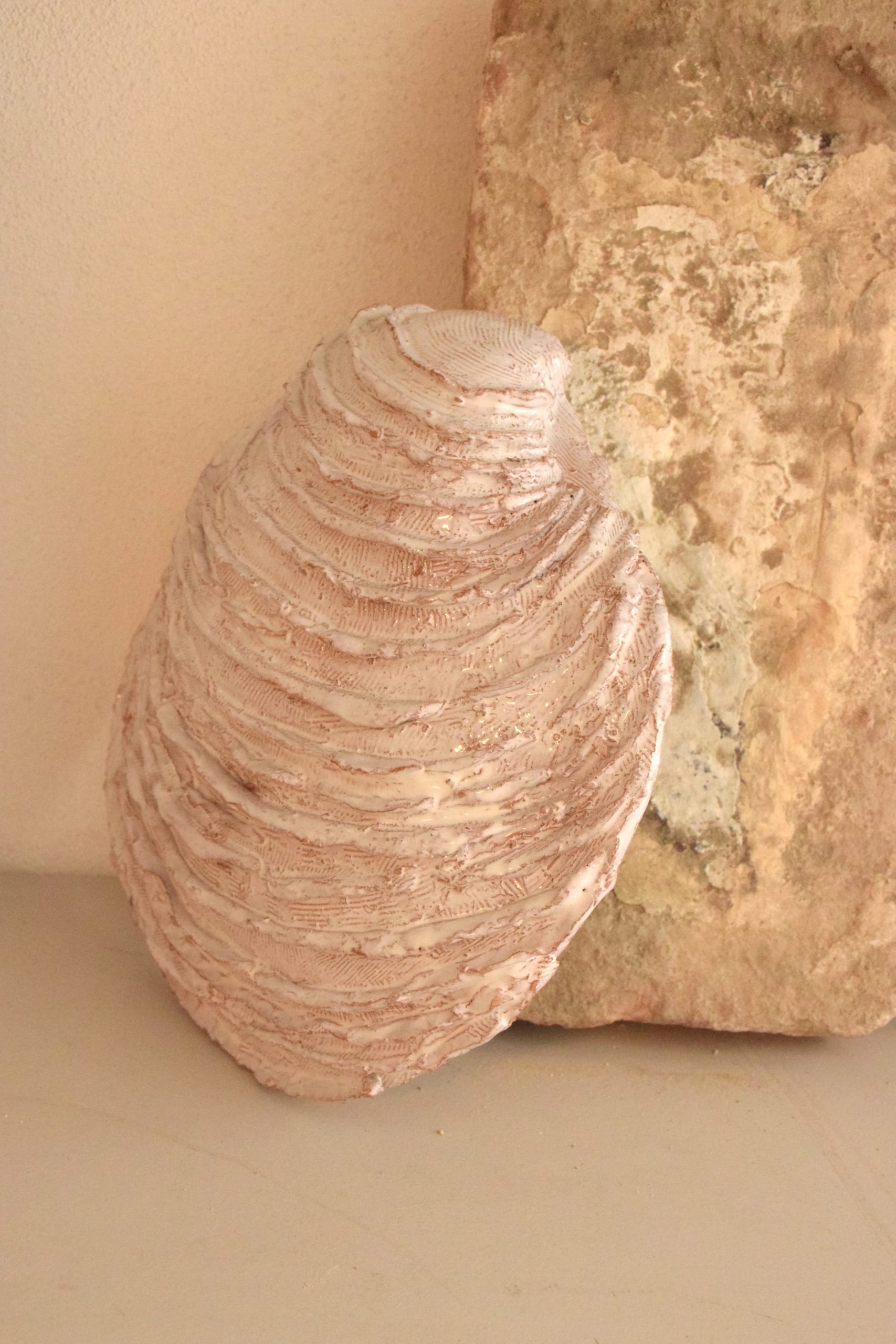 Arrivano trascinate dalle onde sulla spiaggia, un tesoro che da sempre si sente il bisogno di raccogliere, portare nelle nostre case come ricordo di quel momento, una cartolina dal mare. Non si sa da quanto tempo stanno viaggiando o da quanto tempo aspettano di essere trovate sulla riva, appartengono ad un mondo lontano, irraggiungibile. La conchiglia è stata realizzata completamente a mano con argilla rossa e smalto, ha una larghezza di ventiquattro per ventiquattro centimetri e un’altezza di cinque centimetri. La “Conchiglia” è un pezzo unico, non esiste una copia identica per forma, dimensione e colore all’originale.