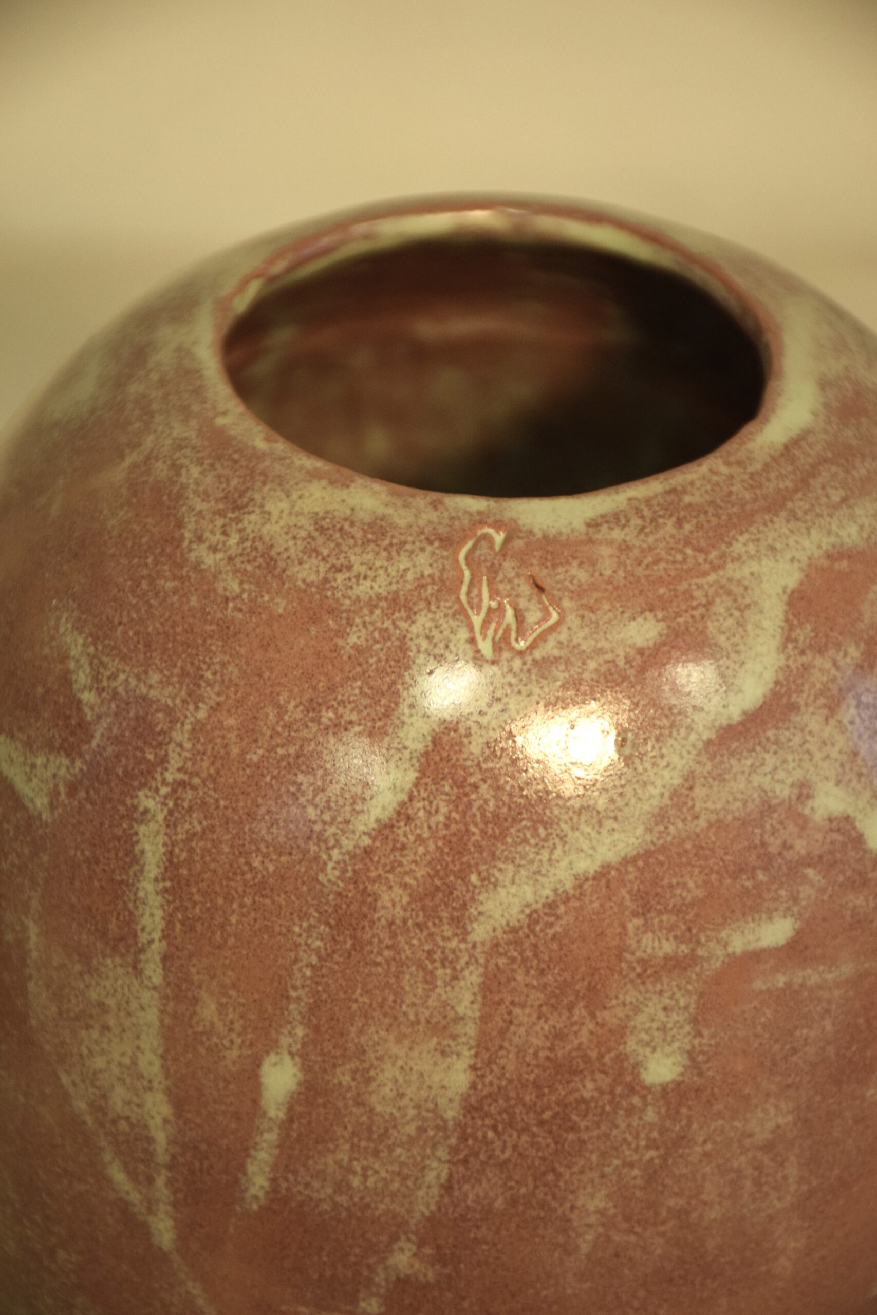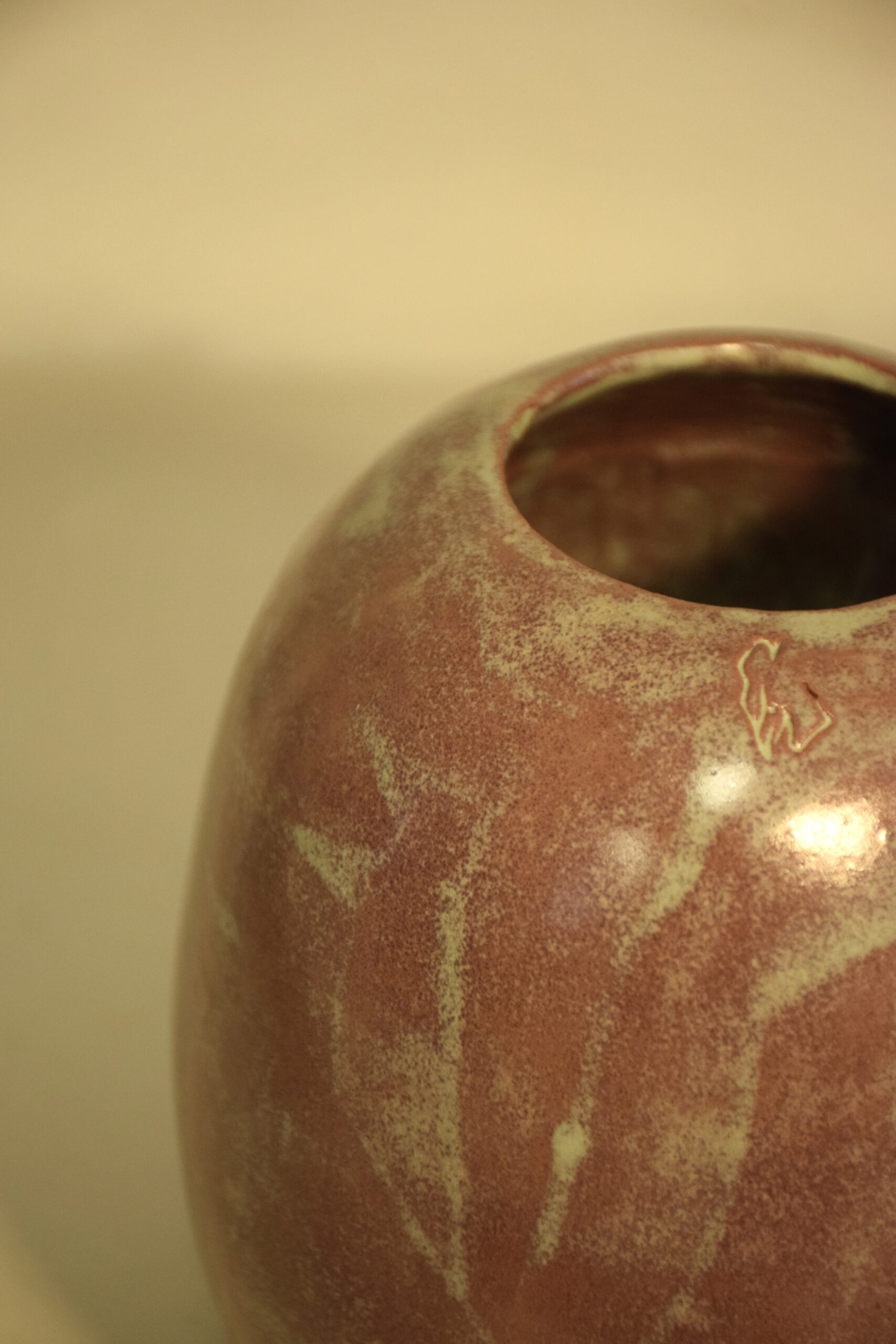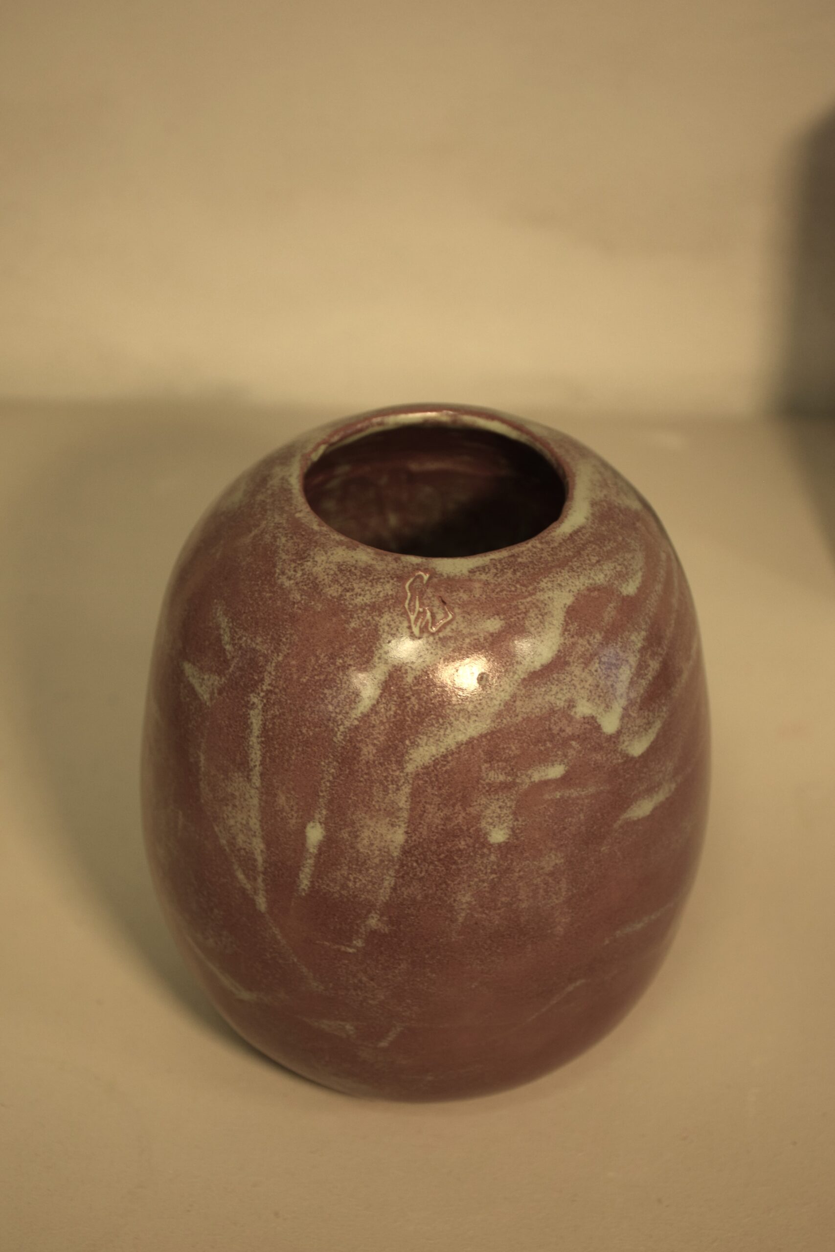 Hanno una forma arrotondata, instabile, molto difficile da prendere, scivolose. Il vaso oliva vuole celebrare la forma e la superficie dell’oliva, della buccia lucida dal colore sempre diverso. Si vuole ricreare un’oliva, solo un’oliva, una sorpresa. Come dopo dopo una raccolta quando ci si accorge che un’oliva è rimasta in tasca o solitaria è caduta sul pavimento, vicino lo scalino o al piede del tavolo. È stata realizzata in argilla rossa e smalto e occupa uno spazio di sedici centimetri di altezza e undici di larghezza. Il “Vaso oliva” è un pezzo unico, non esiste una copia identica per forma, dimensione e colore all’originale.