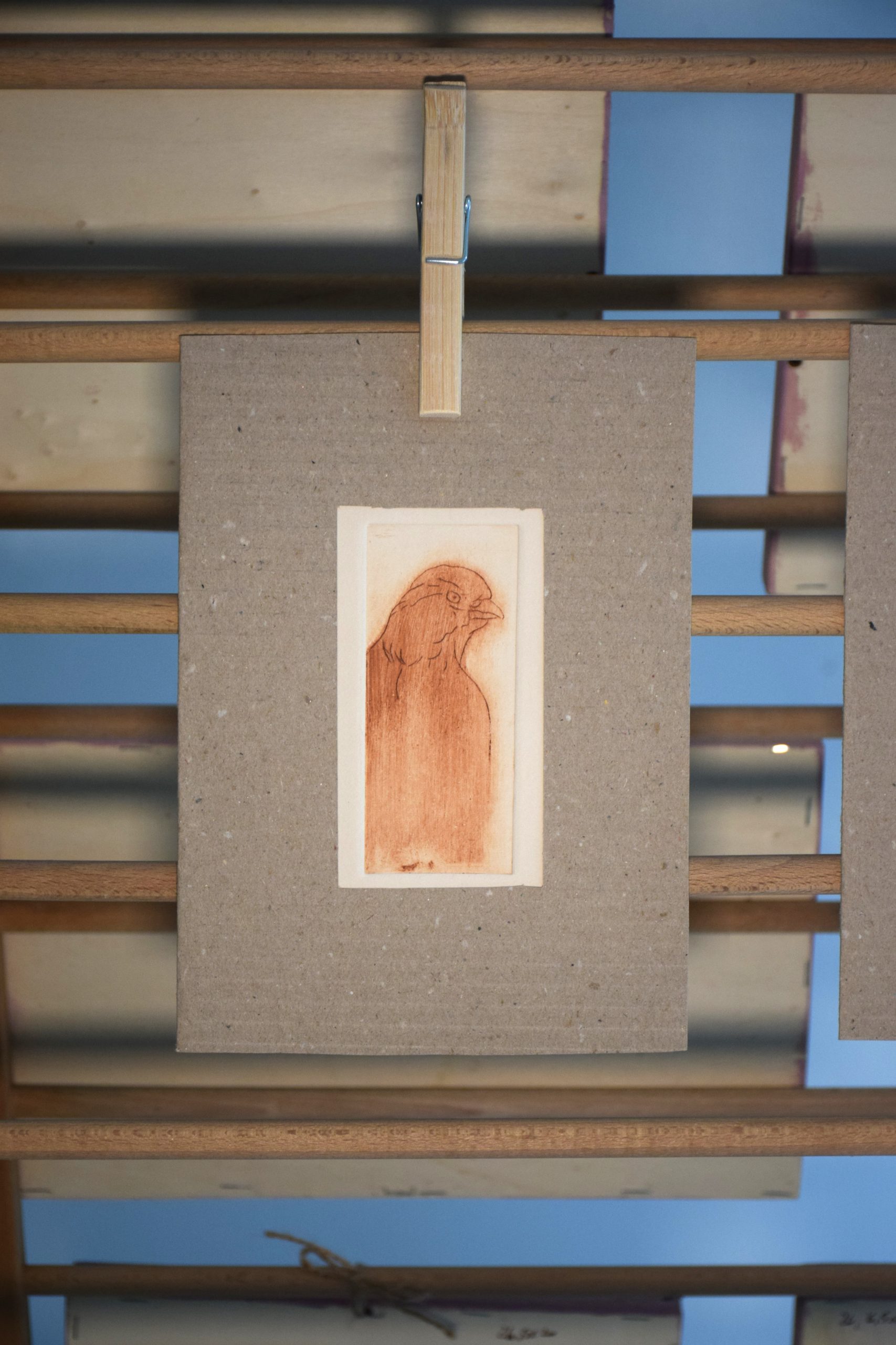 L’incisione a puntasecca è una tecnica grafica che consiste nel graffiare con una punta affilata un supporto morbido come ad esempio il rame, il plexiglas o lo zinco. Una volta disegnata o meglio graffiata la tavoletta può essere inchiostrata e stampata sulla carta con l’aiuto di un torchio. Questa tecnica permette di riprodurre la stessa immagine incisa un certo numero di volte che vengono riportate dall’artista in fondo alla stampa ad esempio 1/50 ovvero stampa prima su cinquanta copie. Queste stampe non hanno un numero di tiratura perché ogni esemplare è unico in quanto si interviene sulla matrice, prima della stampa, lasciando dei residui d’inchiostro in alcuni punti realizzando delle stampe che non si possono riprodurre.