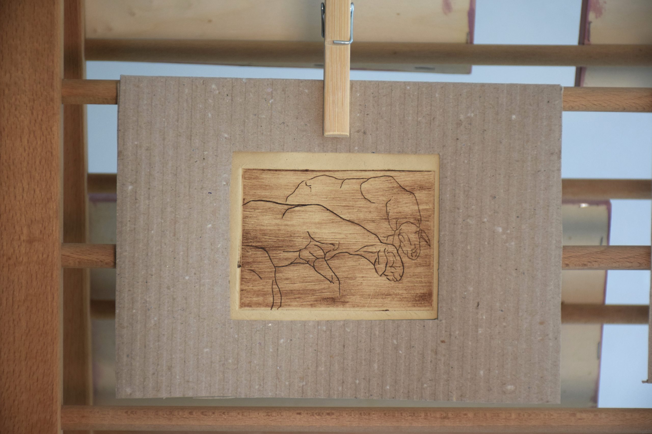 L’incisione a puntasecca è una tecnica grafica che consiste nel graffiare con una punta affilata un supporto morbido come ad esempio il rame, il plexiglas o lo zinco. Una volta disegnata o meglio graffiata la tavoletta può essere inchiostrata e stampata sulla carta con l’aiuto di un torchio. Questa tecnica permette di riprodurre la stessa immagine incisa un certo numero di volte che vengono riportate dall’artista in fondo alla stampa ad esempio 1/50 ovvero stampa prima su cinquanta copie. Queste stampe non hanno un numero di tiratura perché ogni esemplare è unico in quanto si interviene sulla matrice, prima della stampa, lasciando dei residui d’inchiostro in alcuni punti realizzando delle stampe che non si possono riprodurre.