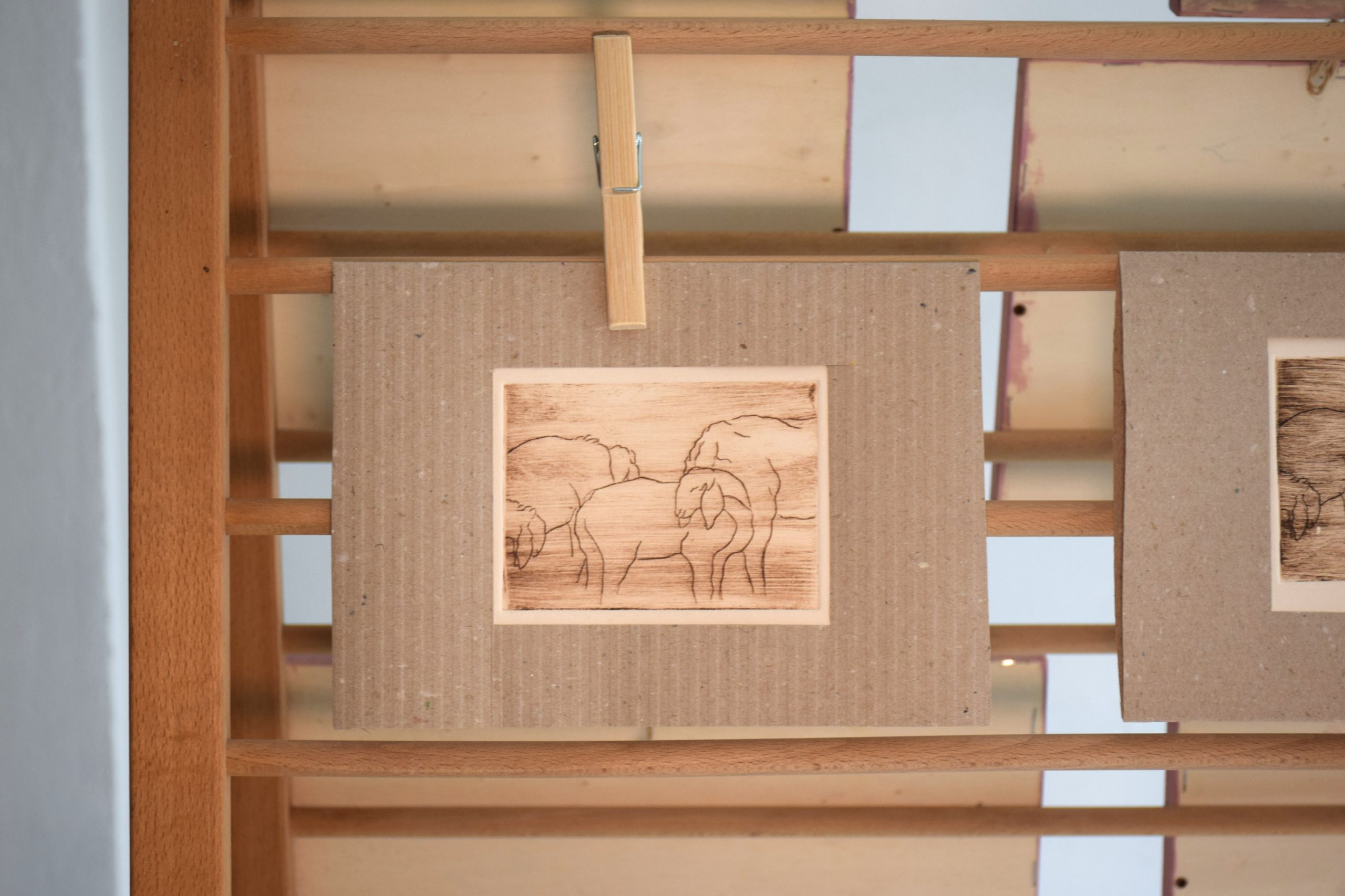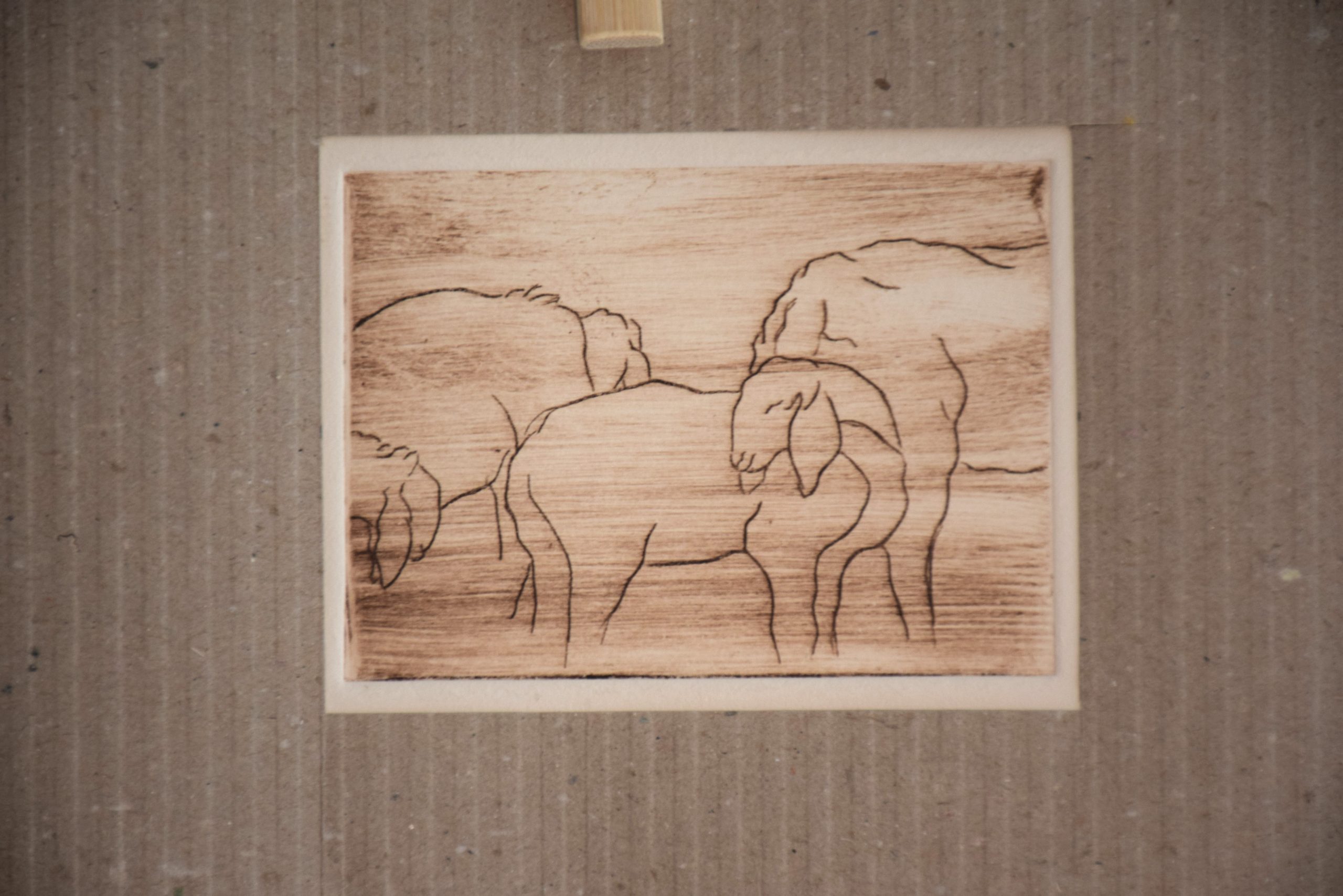 L’incisione a puntasecca è una tecnica grafica che consiste nel graffiare con una punta affilata un supporto morbido come ad esempio il rame, il plexiglas o lo zinco. Una volta disegnata o meglio graffiata la tavoletta può essere inchiostrata e stampata sulla carta con l’aiuto di un torchio. Questa tecnica permette di riprodurre la stessa immagine incisa un certo numero di volte che vengono riportate dall’artista in fondo alla stampa ad esempio 1/50 ovvero stampa prima su cinquanta copie. Queste stampe non hanno un numero di tiratura perché ogni esemplare è unico in quanto si interviene sulla matrice, prima della stampa, lasciando dei residui d’inchiostro in alcuni punti realizzando delle stampe che non si possono riprodurre.