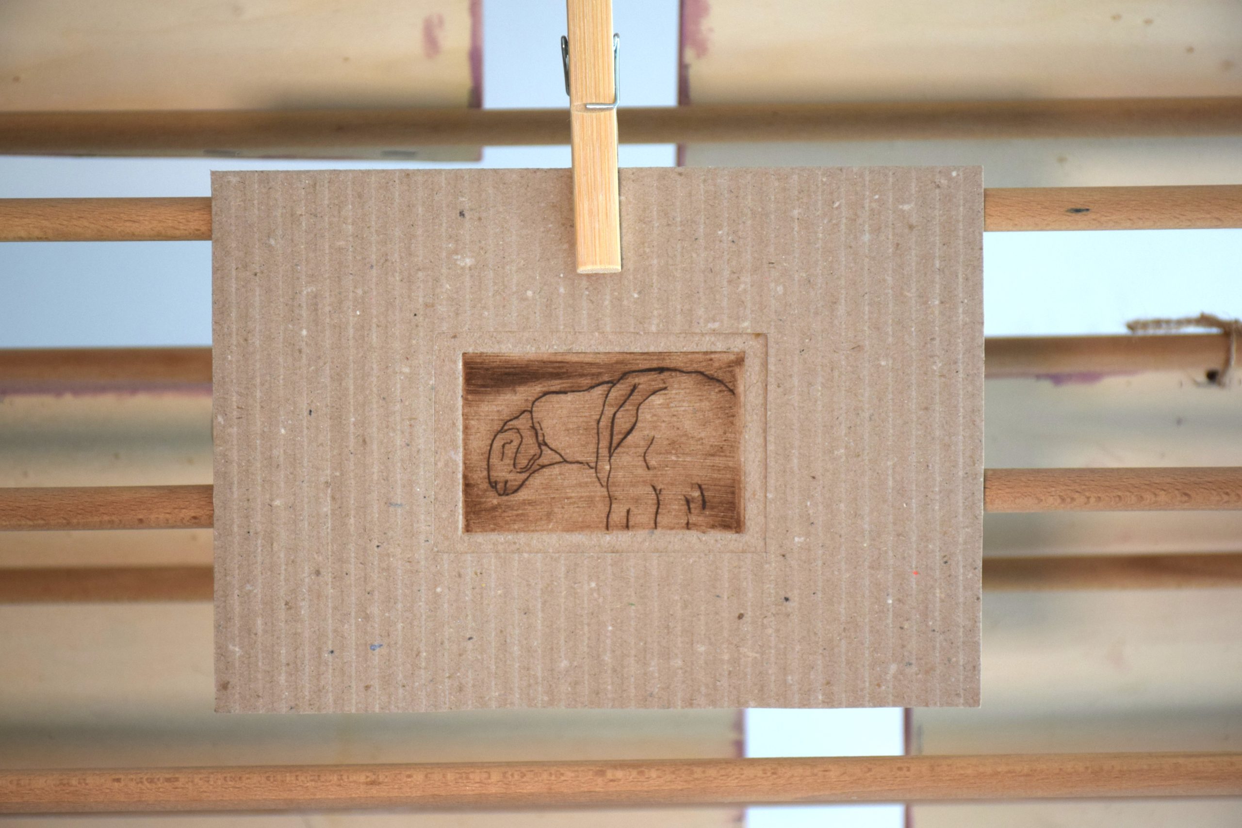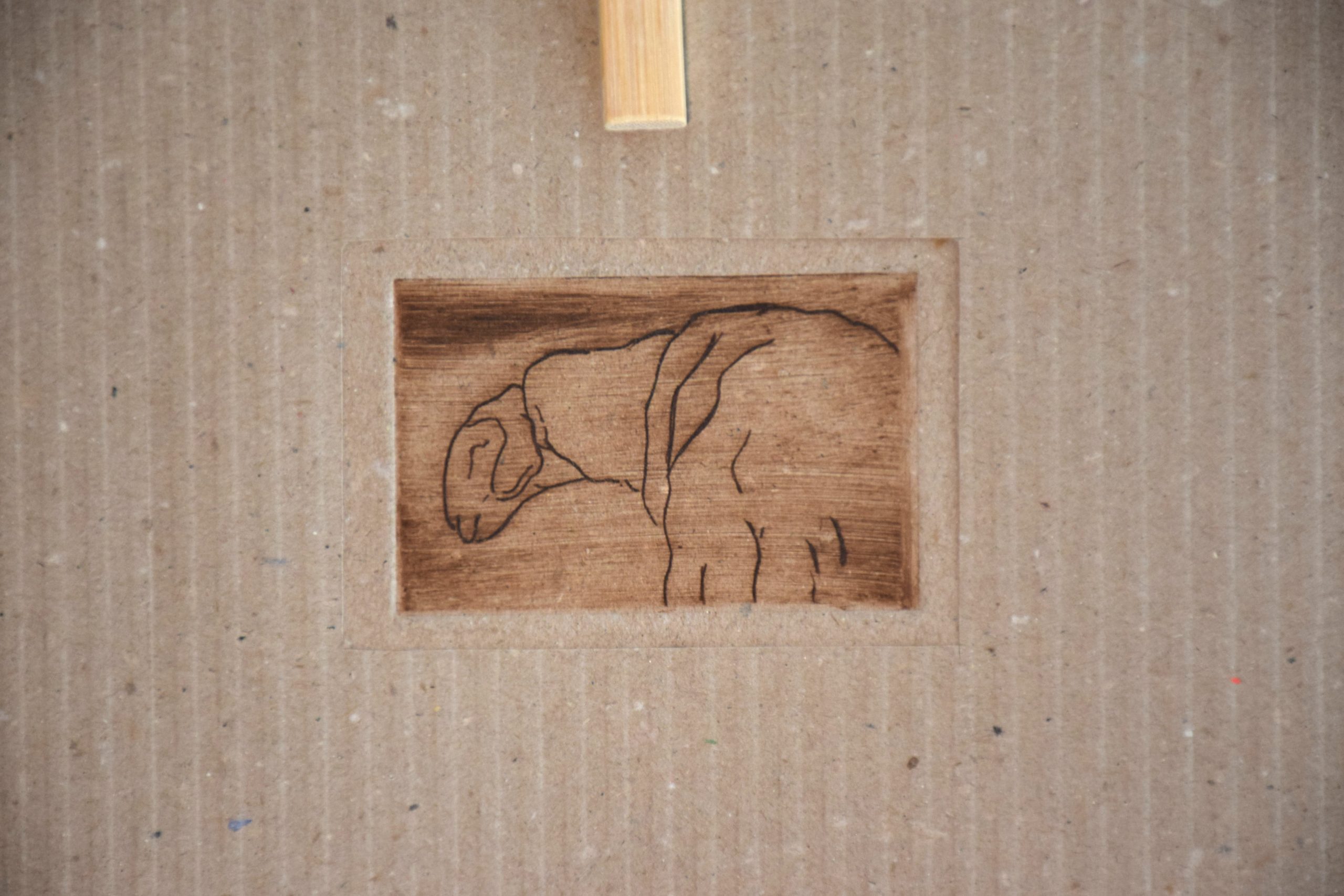 L’incisione a puntasecca è una tecnica grafica che consiste nel graffiare con una punta affilata un supporto morbido come ad esempio il rame, il plexiglas o lo zinco. Una volta disegnata o meglio graffiata la tavoletta può essere inchiostrata e stampata sulla carta con l’aiuto di un torchio. Questa tecnica permette di riprodurre la stessa immagine incisa un certo numero di volte che vengono riportate dall’artista in fondo alla stampa ad esempio 1/50 ovvero stampa prima su cinquanta copie. Queste stampe non hanno un numero di tiratura perché ogni esemplare è unico in quanto si interviene sulla matrice, prima della stampa, lasciando dei residui d’inchiostro in alcuni punti realizzando delle stampe che non si possono riprodurre.