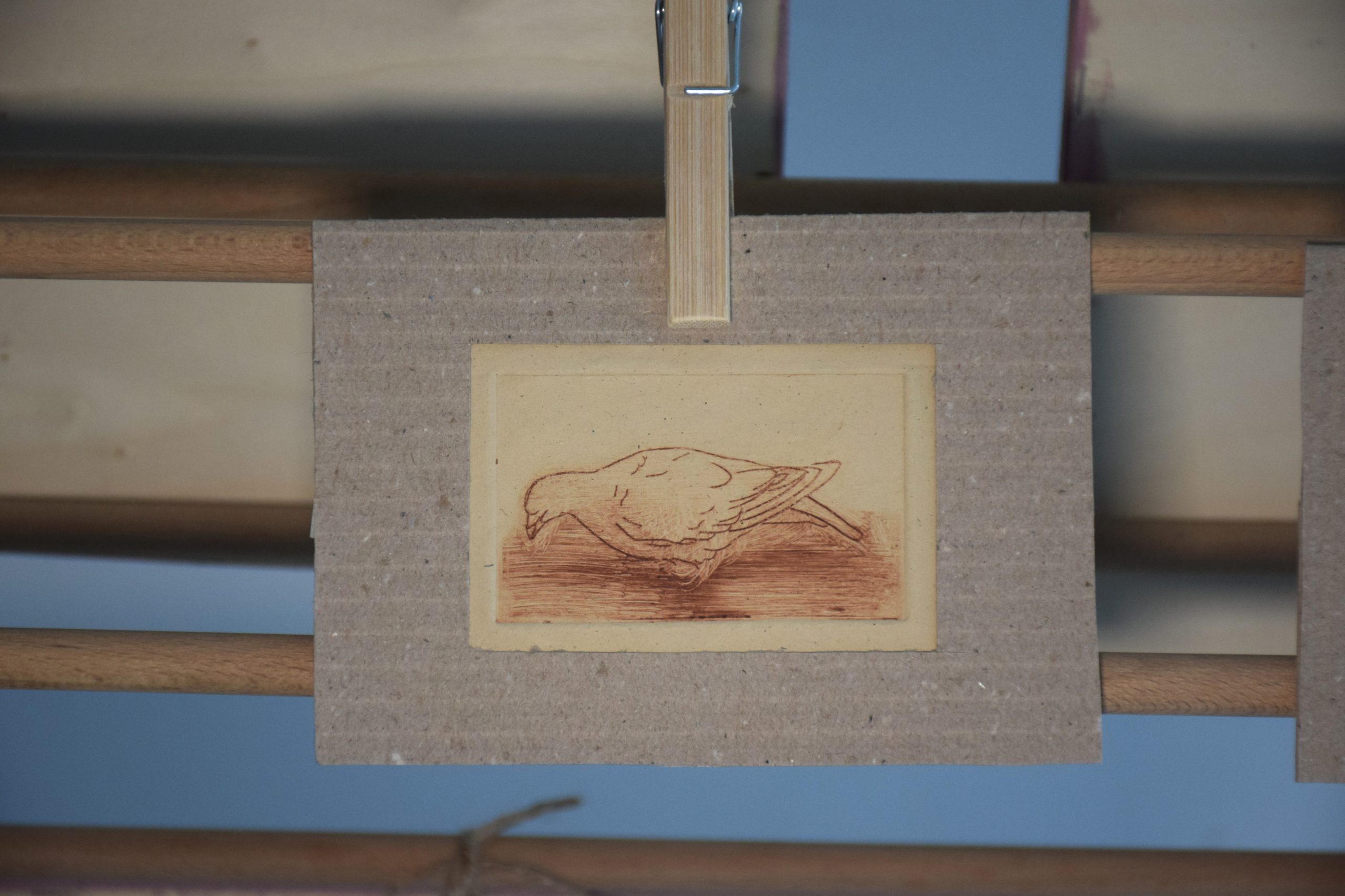 L’incisione a puntasecca è una tecnica grafica che consiste nel graffiare con una punta affilata un supporto morbido come ad esempio il rame, il plexiglas o lo zinco. Una volta disegnata o meglio graffiata la tavoletta può essere inchiostrata e stampata sulla carta con l’aiuto di un torchio. Questa tecnica permette di riprodurre la stessa immagine incisa un certo numero di volte che vengono riportate dall’artista in fondo alla stampa ad esempio 1/50 ovvero stampa prima su cinquanta copie. Queste stampe non hanno un numero di tiratura perché ogni esemplare è unico in quanto si interviene sulla matrice, prima della stampa, lasciando dei residui d’inchiostro in alcuni punti realizzando delle stampe che non si possono riprodurre.