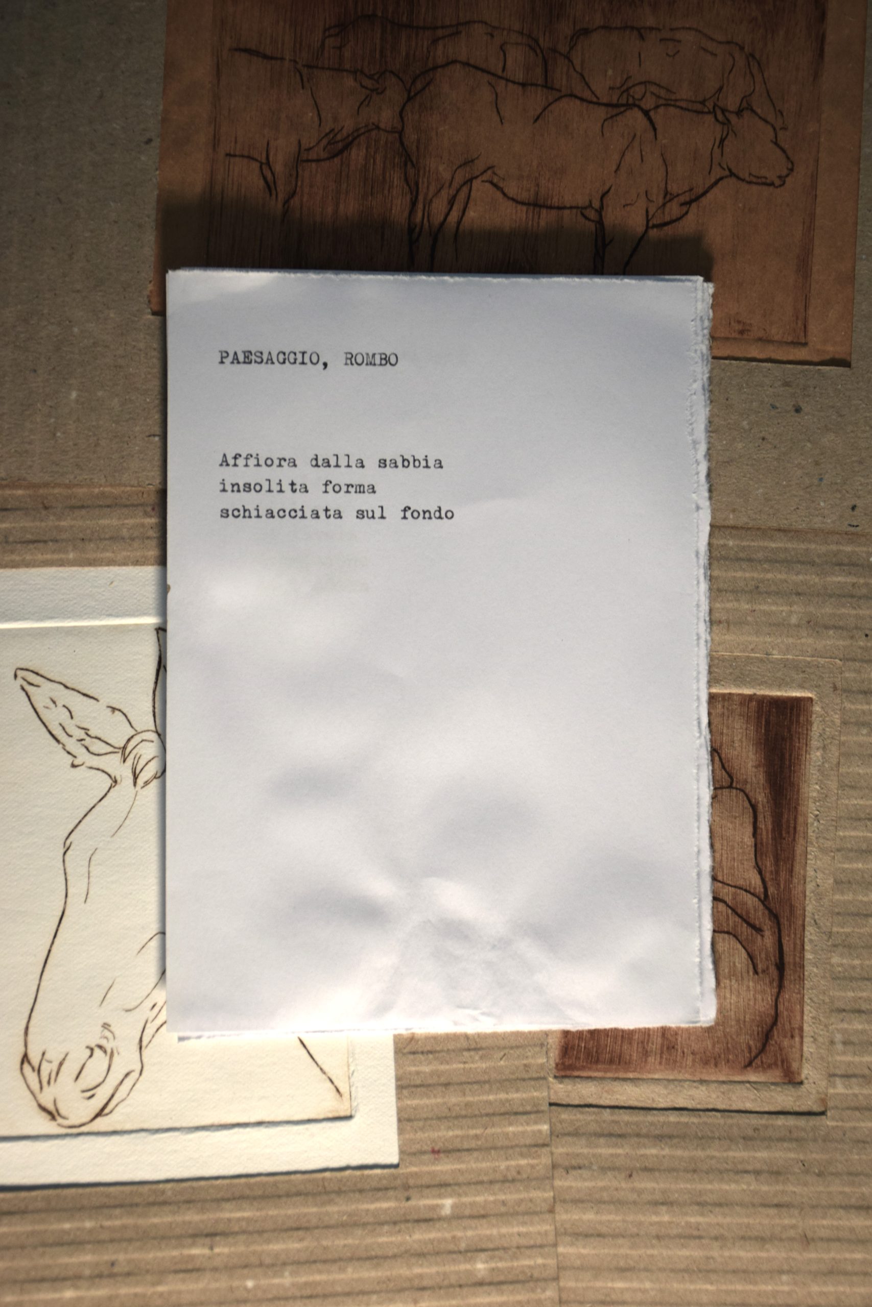 L’incisione a puntasecca è una tecnica grafica che consiste nel graffiare con una punta affilata un supporto morbido come ad esempio il rame, il plexiglas o lo zinco. Una volta disegnata o meglio graffiata la tavoletta può essere inchiostrata e stampata sulla carta con l’aiuto di un torchio. Questa tecnica permette di riprodurre la stessa immagine incisa un certo numero di volte che vengono riportate dall’artista in fondo alla stampa ad esempio 1/50 ovvero stampa prima su cinquanta copie. Queste stampe non hanno un numero di tiratura perché ogni esemplare è unico in quanto si interviene sulla matrice, prima della stampa, lasciando dei residui d’inchiostro in alcuni punti realizzando delle stampe che non si possono riprodurre.