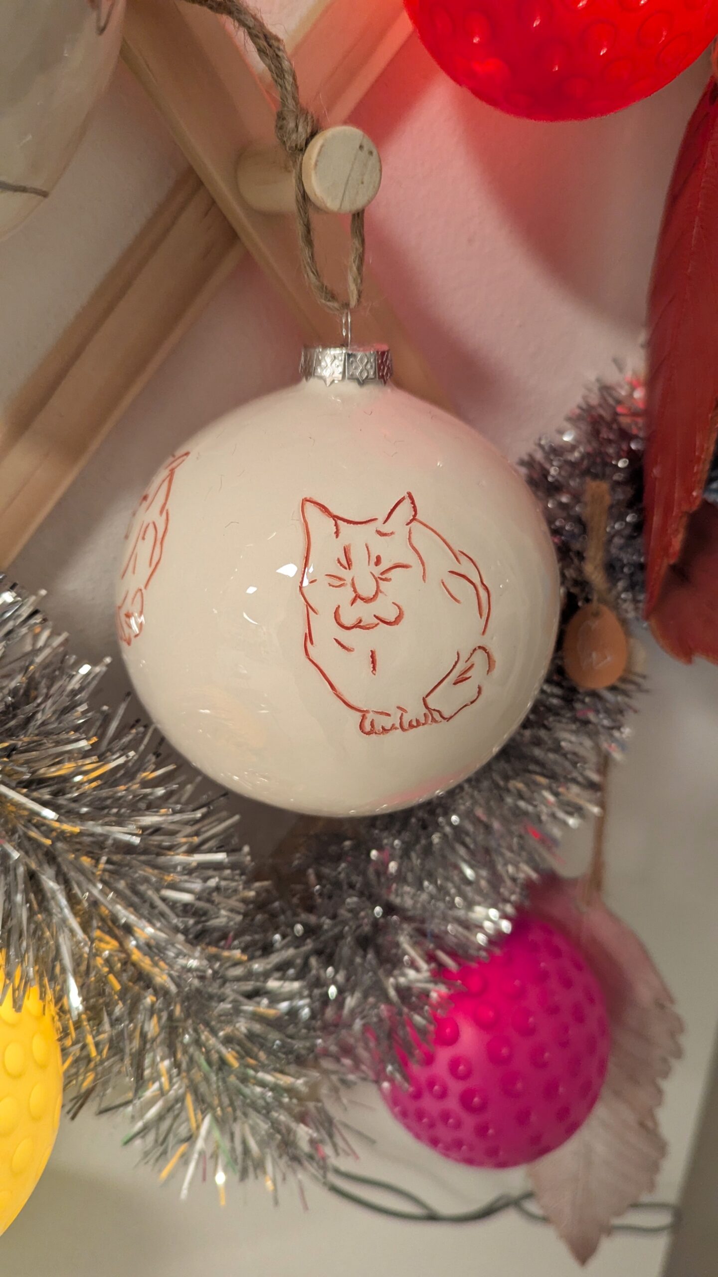 La sfera è stata realizzata incidendo la terra e nel solco creato è stato messo in un secondo momento il colore. Sono frammenti, la stessa immagine ripetuta, un attimo, un ricordo che resta indelebile. Sono paesaggi lontani, luoghi ormai offuscati dal tempo che lentamente li cancella. Il loro ricordo viene riportato alla luce grazie ad alcuni personaggi, delle piccole creature. Si accende un ricordo appeso, si dirada la nebbia, riaffiora il paesaggio, ricompare quel luogo che si credeva di aver perso. Ogni disegno è stato realizzato a mano, si compone di quattro gatti incisi su una superficie di dodici centimetri di diametro. “Paesaggio Sfere” è un pezzo unico, non esiste una copia identica per forma, dimensione e colore dell’originale.