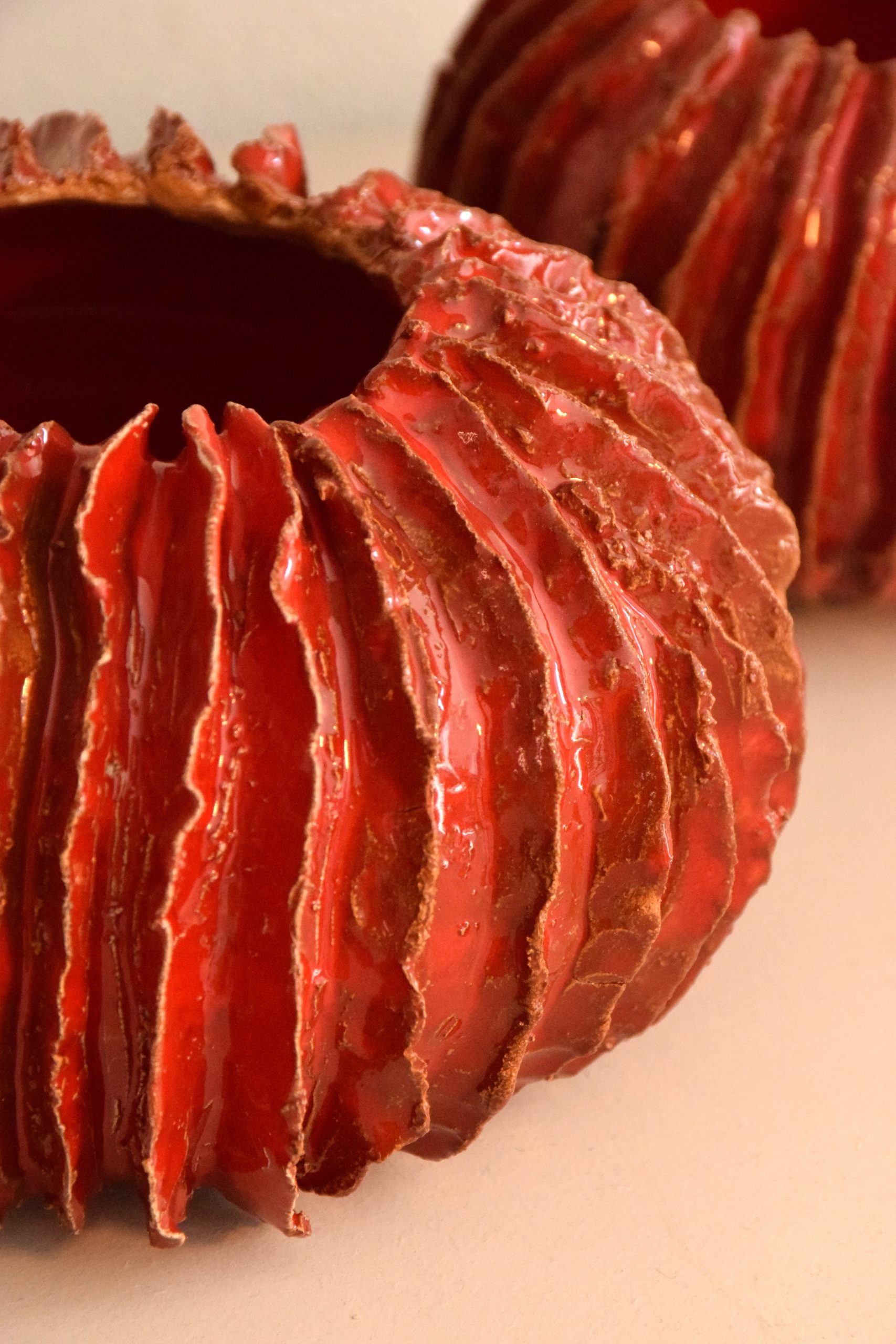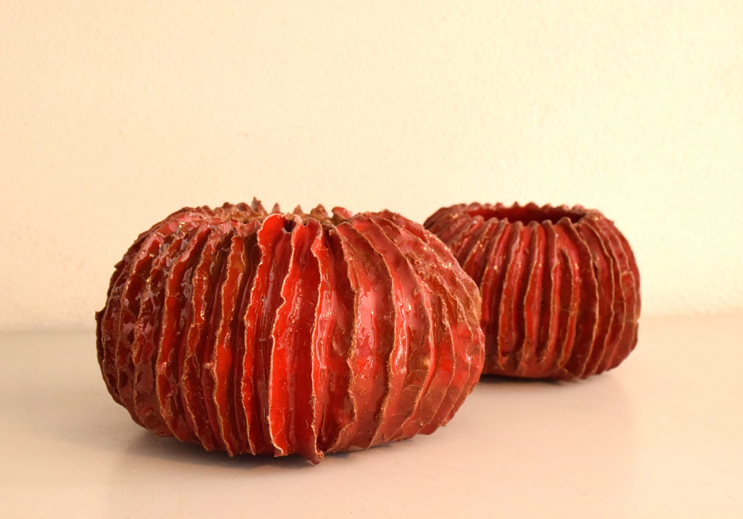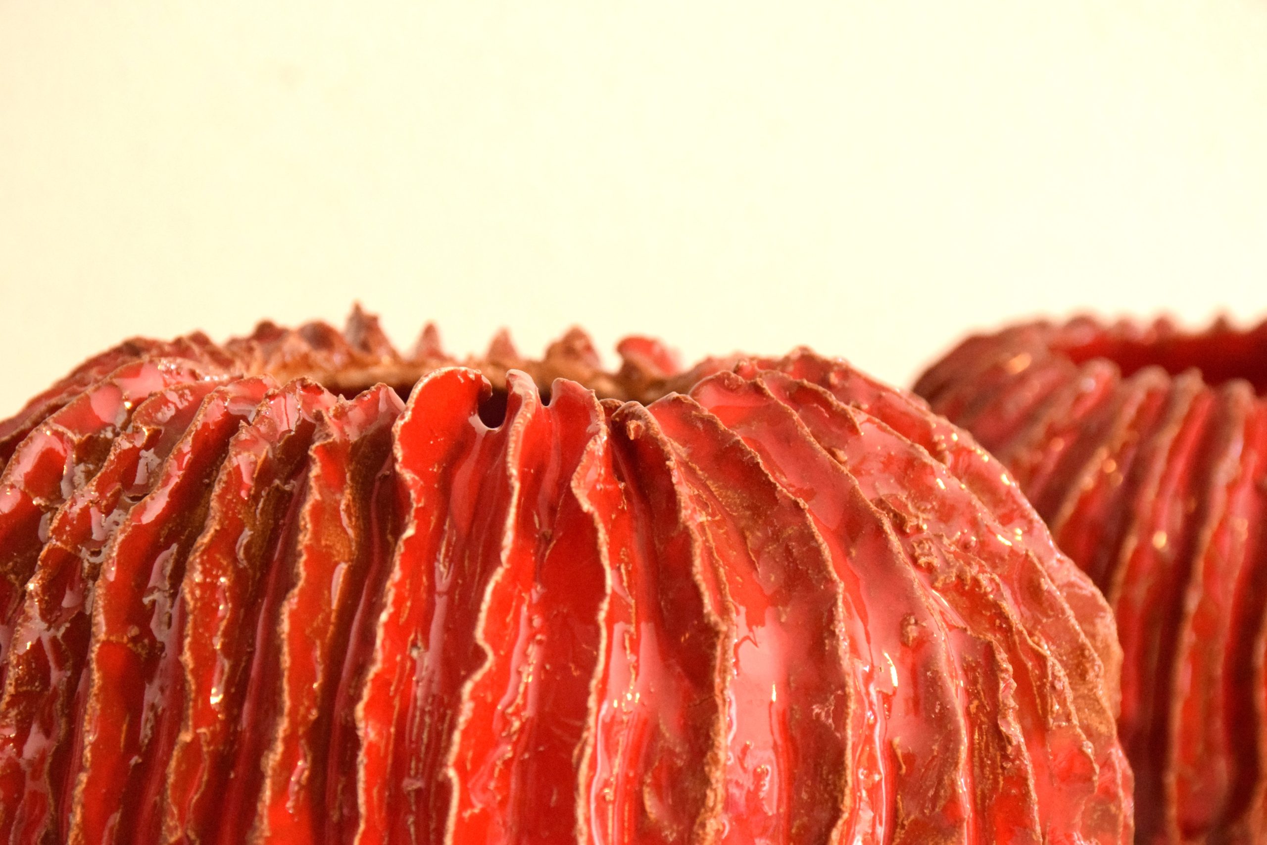 Il vaso è stato realizzato interamente a mano, si vuole ricreare la forma di un elemento vegetale che appartiene al suolo ma non a quello terrestre ma al fondale marino. La sua forma arrotondata potrebbe ricordare uno scheletro di riccio, una roccia invasa da vegetazione, anemoni o coralli. Il vaso è stato realizzato con argilla rossa e smalto con un diametro di quindici centimetri e un’altezza di nove centimetri. Il “Vaso corallo” è un pezzo unico, non esiste una copia identica per forma, dimensione e colore all’originale.